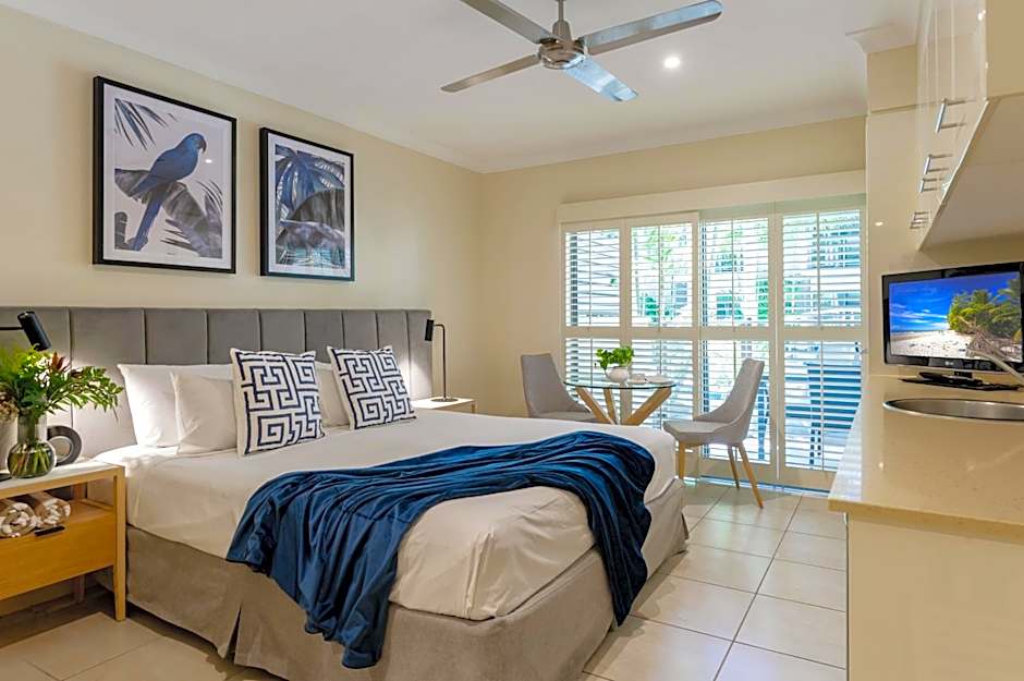 Features direct access to the pool from the balcony (please note this is not a private deck). Includes a kitchenette, microwave, small refrigerator, modern bathroom with shower only. Please note there is no capacity for extra guests.